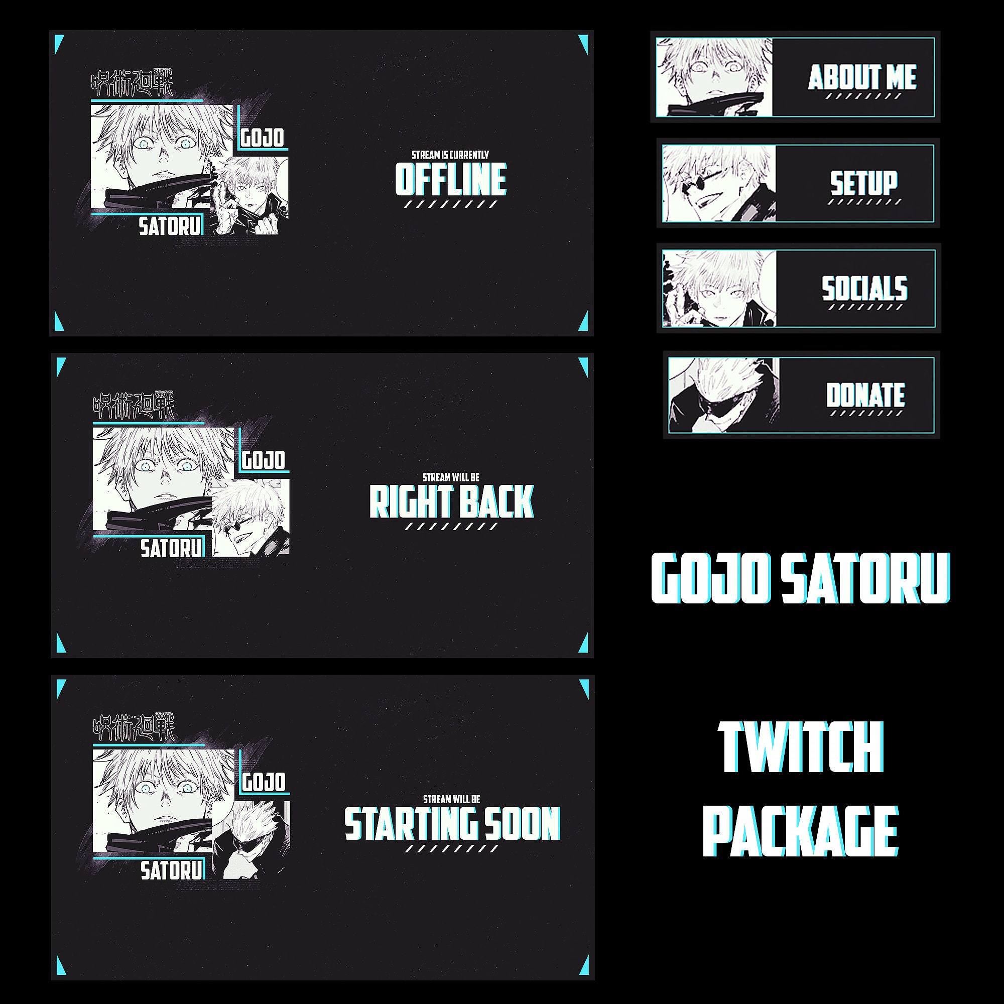 Dark Anime Animated Stream Overlay Package Twitch Youtube Etsy