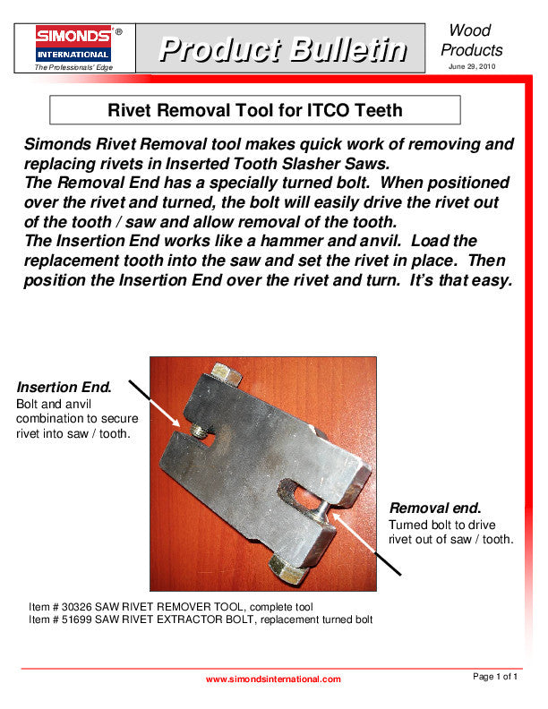 Rivet Removal Tool Simonds